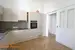 Eine (neue) stilsicher gestaltete Schiebetür schließt die Küche ohne Platzverlust zum Gang hin ab.