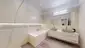 ein luxuriöses Badezimmer mit Doppelwaschtisch, Wanne und bodengleicher Regendusche,