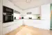 Bereits der Eingangsbereich überzeugt durch klare Struktur und Großzügigkeit. Hier befinden sich ein praktischer Abstellraum, ein separates WC sowie ein Garderobenbereich – funktional durchdacht und repräsentativ gestaltet. Von hier gelangt man direkt in die elegante Küche, die sich nahtlos in den offenen Wohn- und Essbereich einfügt. Großzügige Fensterfronten und Dachflächenfenster durchfluten den Raum mit Licht und eröffnen den unmittelbaren Zugang zur Terrasse – ein idealer Rahmen, in dem Wohnen und Genießen harmonisch ineinander übergehen.