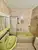 Über das Wohnzimmer hat man Zugang zum Schlafzimmer, ausgestattet mit einem Doppelbett und Nachtkästchen, von dem aus das Bad über einen begehbaren Kleiderschrank erreichbar ist. Sowohl das Bad, als auch das WC im Vorraum sind im berühmten “Avocado” Stil, ein Trend aus den 70er Jahren, wo die Möbel und Ausstattung grün sind.