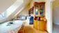 Vorraum, Abstellraum, Badezimmer (Wanne, WC, Bidet), separate Küche mit Terrassenzugang, großzügiger Wohn-/Essbereich mit Gaubenfenstern.