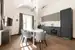 Historischer Charme trifft modernes Interior: gewölbte Decken, weitläufige Wohnküche und eine grüne Terrasse/Patio direkt vor der Wohnung.