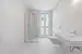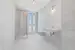 Das Badezimmer nebenan ist mit einer Dusche, einem Handwaschbecken sowie einem Waschmaschinen-Anschluss und einer Toilette ausgestattet. Es ist in zeitlosem warmen beige gehalten und bietet auf knapp 8 m² viel Platz und Stauflächen.