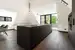 Moderne Inselküche mit hochwertigen Geräten (u. a. Miele Kühl-/Gefrierkombination), Barplatz für Gäste