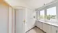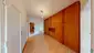 Der zentrale Vorraum erschließt drei helle Zimmer mit Grünblick, ein Badezimmer mit Dusche und Waschbecken, ein separates WC sowie die Küche. Eine Besonderheit ist der von Architekt Gustav Peichl entworfene Einbauschrank, der den Vorraum gestalterisch gliedert.