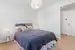 Unmittelbar vis à vis der Eingangstüre liegt das Schlafzimmer, welches mit über 13 m² ausreichend Fläche für ein Doppelbett, einen Schrank und eine Kommode bietet. Es verfügt über zwei Fenster, welche in Richtung Norden ausgerichtet sind.