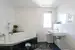 The spacious entrance hall is tiled with stoneware. It opens onto the parquet floored, light flooded kitchen-dining-living area with large windows with access to the tranquil garden and terrace. This floor is laid out such that you can enjoy family time together to remember the happy moments. There is also a guest WC on this floor.