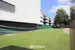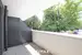 Der große Balkon liegt zur offenen, begrünten Fläche.