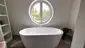 - Obergeschoss (OG): Helle Galerie, drei Schlafzimmer, Garderobe; Wellness-Badezimmer mit Ausblick ins Grüne (Badewanne)