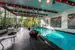 Direkt an das Haupthaus angeschlossen befindet sich eine große Schwimmhalle mit einem 60 m² großen Pool, ein Dampfbad, ein Fitnessbereich und ein Weinkeller. Im Garten ist zusätzlich eine ehemalige Kegelbahn situiert. Das Gästehaus bietet Platz für eine weitere Familie und verfügt auf rund 140 m² über einen Salon, eine Küche, drei WCs und ein großes Badezimmer. Das Gärtnerhaus hat rund 80 m² und ist mit Dusche und WC ausgestattet, auch hier ist der Dachboden ausgebaut.