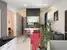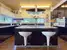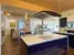 Helle Stein-Arbeitsflächen reflektieren das Licht wie ein weicher Schein, Einbauschränke bis zur Decke, perfekt organisiert, fast wie unsichtbare Helfer. Die Kücheninsel in der Mitte teilt sich in zwei Welten: auf der einen Seite der Kochbereich, auf der anderen Seite eine Bar mit erhöhter Ablage und zwei Barhockern – ein Platz für Gespräche, Geschichten, kleine Genüsse.