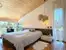 Elternschlafzimmer – Ruhe & Blick ins GrünDas Elternschlafzimmer öffnet sich zum Garten, Licht fällt durch die Fenster, die liebevoll integrierten Dachschrägen geben dem Raum eine intim-gemütliche Struktur. Es ist ein Kokon aus Holz, Weiß und Licht, ein Ort der Stille, an dem man morgens die Sonne auf dem Parkett tanzen sieht und abends den Tag hinter sich gleiten lässt.