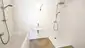 Das Bad mit Badewanne, Dusche und Waschmaschinenanschluss ist zeitlos weiß verfließt. Das große Vorzimmer und der Abstellraum bieten viel Stauraum. Ein separates Gäste-WC ist ebenfalls vorhanden.