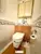 Das Badezimmer bietet eine Badewanne mit Duschfunktion und Spiegelschrank. Das WC ist separat.