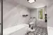 * Badezimmer mit Badewanne, Dusche, Doppelhandwaschbecken und Toilette