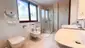 Das größere der beiden Bäder ist mit einem großen Tageslichtfenster, einer Badewanne und Dusche sowie zwei Handwaschbecken und einer Toilette ausgestattet. Das zweite Badezimmer liegt nebenan, es verfügt über eine Dusche und ein Handwaschbecken samt Spiegelschrank.