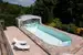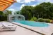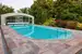 Beheizter Außenpool (12 × 5 m) mit Natursteinterrasse und motorisierter, begehbarer Glaskuppel (neu)