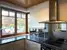 Hochwertig ausgestattete Wohnküche mit Eckfenstern und Durchreiche zum Essbereich