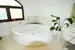 - großes Badezimmer mit barrierefreier Dusche, Doppelwaschbecken, Badewanne, Bidet und WC