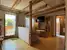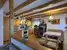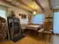 Ein paar Stufen hinauf, durch den Windfang, der Garderobe und Ankommen elegant vereint – und schon ist man mitten im Herz des Hauses: der Tiroler-Stube. Sie ist ein einziger Raum, aber einer, der einen sofort in Beschlag nimmt. Die kräftigen Holzbalken verleihen ihr den Charakter eines behaglichen Landrefugiums. Vis-à-vis flackert der besonders effiziente Speckstein-Ofen – praktisch, schön und Mittelpunkt zugleich. Sein Knistern ersetzt kalte Stromwärme durch echtes Feuer, und der Holzvorrat in der Nische wird fast schon Teil der Einrichtung.