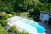 Der Garten beeindruckt nicht nur mit seiner Größe und gepflegtem Rasen, sondern auch mit seinem herrlichen, überdachten Swimmingpool, Pool-Häuschen, Gartendusche, Lounge-Bereich, Gartenhaus und Kinderspielplatz sowie direktem Zugang in den Wasserwald.