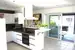 Haupthaus EG: 1 geräumiges Wohn- Esszimmer mit eleganter, offener Küche und Zugang auf beide Terrassen und Garten; 1 Gäste WC mit Handwaschbecken; 1 Wirtschaftsraum mit Waschküche und ebenfalls Zugang in den Garten;