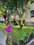 Der 704 m² große Garten mit Obstbäumen lädt zum Entspannen ein; die Gartenpflege obliegt den Mietern.