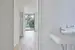 Die Wohnungseingangstür mit Glasseitenfeld unterstreicht den modernen Stil des Hauses, während die weiß lackierten Innentüren und die klaren Linien des Interieurs ein harmonisches Gesamtbild schaffen. Die Terrasse bzw. Loggia ist mit hochwertigen Betonplatten belegt und bietet Platz für entspannte Stunden im Freien.