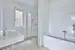 Das Badezimmer präsentiert sich modern und funktional zugleich. Eine Badewanne, eine bodengleiche Dusche mit Edelstahlablaufrinne, hochwertige Armaturen und ein elektrischer Handtuchheizkörper schaffen ein komfortables Wohlfühlambiente.