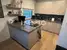 Eine hochwertige Einbauküche mit Kücheninsel und offenem Wohnbereich mit Ausgang zur Terrasse und in den Garten erzeugen ein luftiges Wohlfühlklima. Im offenen Wohnbereich wurde Parkett verwendet.