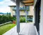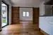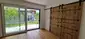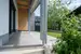 Die große Glasfront mit Schiebetür gibt den Blick auf die überdachte Terrasse frei.