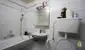 Rechter Hand erreicht man das helle Badezimmer mit Duschwanne, Waschtisch und WC.