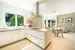 Der Innenraum beeindruckt mit einer exklusiven Miele-Küche, perfekt integriert in das offene Wohnkonzept, sowie einem großzügigen Wohnzimmer mit offenem Kamin, direktem Terrassenzugang und viel natürlichem Licht.