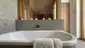 EG: großzügiges Entrée, 2 Schlafzimmer, Ankleide, ein Wellness-Bad samt Walk-in Dusche, Sauna und extra WC. Sehr fein ist der direkte Terrassen-und Gartenzugang.