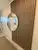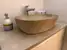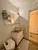 • ein helles Badezimmer mit Dusche, Waschbecken und WC,