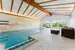 Die hochwertig ausgestattete Küche mit Gasherd, Dampfgarer und Miele-Geräten macht Kochen zum Vergnügen. Der angrenzende Wintergarten, welcher als Esszimmer genutzt wird, führt in den Wellnessbereich mit Hallenbad, Dusche, WC und Infrarotkabine.