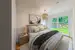 Edles Echtholzparkett im klassischen Fischgrätenmuster verleiht den Wohnräumen zeitlose Eleganz, während helle Fliesen im selben Muster das Badezimmer stilvoll akzentuieren und eine harmonische Verbindung von Tradition und Moderne schaffen.
