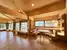 großzügiger Wohn- und Essbereich mit Kachelofen und Kamin