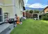 # Haus wurde an die Grundstücksgrenze gebaut , dadurch dreiseitiger großer Garten