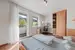 Von hier aus hat man Zugang zum umlaufenden Garten sowie der überdachten Terrasse mit Abstellraum. Ideal gelegen für einen Getränkekühlschrank, Gartenutensilien,....