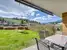 Den Kochbereich betritt man offen über die Diele, die Einbauküche mit dem frei stehenden Block ist in elegantem schlichten Weiß gehalten. Der Essplatz setzt sich in den attraktiven Wohnraum mit raumbreiter bzw. raumhoher Verglasung zur Terrasse fort. Die Terrasse ist nach Süd-Westen orientiert, ist vollständig gedeckt und es befindet sich dort eine geschlossene Holz-Box als Stauraum für Gartengeräte.
