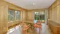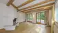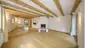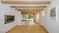 Im großen Wohnsalon befindet sich ein offener Kamin und an der Decke dekorative Holzbalken, das Speisezimmer ist daneben situiert und komplett mit stilvollen Wandvertäfelungen versehen.