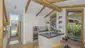 Der knapp 30 m² große Essbereich mit offener, komplett ausgestatteter Küche befindet sich ebenfalls im Dachgeschoss.