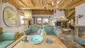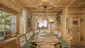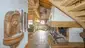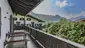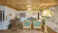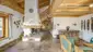 Man betritt den Vorraum mit Garderobe und kommt sodann in den großzügigen Wohnbereich. Hier befindet sich die voll ausgestattete Küche und gegenüber der gemütliche Essbereich. Ein stilvoll integrierter offener Kamin schafft eine gemütliche Atmosphäre. Der Wohnraum bietet direkten Zugang auf den großzügigen umlaufenden 33 m² großen Balkon mit traumhaftem Panoramablick. Auf dieser Ebene befindet sich außerdem ein Badezimmer mit Dusche, WC und Handwaschbecken.