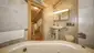 Über die Treppe gelangt man in das Dachgeschoss der Maisonette auf eine Galerie/Vorraum mit Luftraum zum Wohnzimmer. Auf dieser Etage befinden sich 2 Schlafzimmer und ein weiteres Badezimmer mit großer Badewanne und Massagedüsen. Zudem ein Abstellraum.