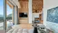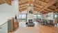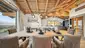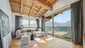 Der knapp 82 m² großen Wohnsalon, welcher nach allen Seiten Bergblick und eine wunderschöne Dachstuhluntersicht bietet, teilt sich auf in den gemütlichen Wohnbereich mit hochwertiger Wohnlandschaft und Essbereich, wo bis zu 8 Personen auf dem Massivholztisch Platz finden. Mittig befindet sich der offene Glaskamin.