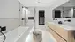 Im Dachgeschoss befindet sich der Haupteingang, eine große Garderobe, ein Gäste-WC, die extrem große Designerküche, ausgestattet mit Gaggenau Geräten und Bar sowie Back-Kitchen.