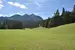 Sonniger Garten mit Terrasse und großem Gartenhaus