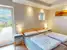 Das geräumige Hauptschlafzimmer bildet zusammen mit dem en Suite Badezimmer und Zugang zur Süd-Terrasse eine perfekte Einheit und Rückzugsort. Das angeschlossene Badezimmer ist mit Waschbecken, WC und sowohl mit einer Eckbadewanne als auch einer ebenerdigen Dusche ausgestattet. Das zweite Schlafzimmer mit Panoramafenster, welches den Raum mit natürlichem Licht durchflutet und ebenfalls mit elektrischen Raffstores verdunkelt werden kann, ist mit Blick auf die touristische Vermietung mit einem extragroßen 2,4 m breiten Tripple-Bett ausgestattet. Das dazugehörige Badezimmer ist mit einer begehbaren Dusche, Waschbecken und WC ausgestattet und kann auch von einer weiteren Person, die auf dem Schlafsofa im Wohnzimmer nächtigt, genutzt werden.