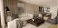 Dieses elegante 2-Schlafzimmer-Apartment (für 3-4 Personen) befindet sich im 3. Stock. Es verfügt über ein Hauptschlafzimmer mit begehbarem Kleiderschrank und ein Einzelschlafzimmer. Das Hauptschlafzimmer bietet Zugang zum Badezimmer und zur Sauna mit Dusche. Sowohl Wohn- als auch Schlafzimmer führen auf den ca. 12m² großen Balkon.